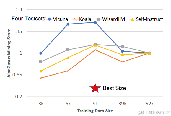 - 数量:从质量过滤后单一的stack exchange中采样更高量级的训练样本,并不能显著带来效果提升。之前公认的样本数量越多越好,可能更多是数量提升带来的指令多样性提升。