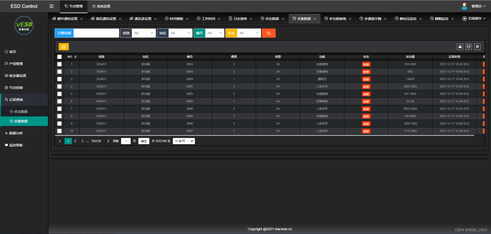 工艺控制:静电监控系统可以通过监测工艺参数,例如温度、湿度、气压等,来控制静电的产生和传导。例如,通过调整工艺参数,可以减少静电的产生,从而降低静电的危害。