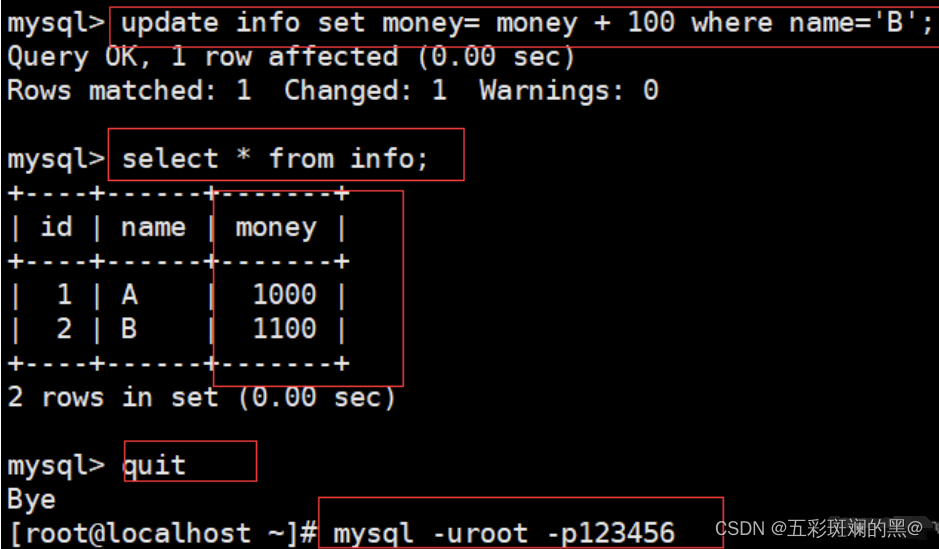 - BEGIN 或 START TRANSACTION:显式地开启一个事务。