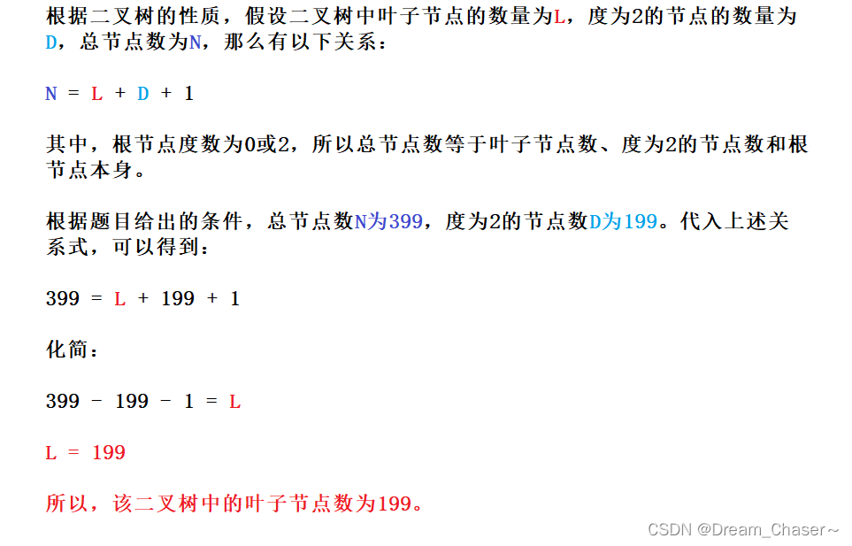 1. 某二叉树共有 399 个结点,其中有 199 个度为 2 的结点,则该二叉树中的叶子结点数为( B)A 不存在这样的二叉树B 200C 198D 199解析:
