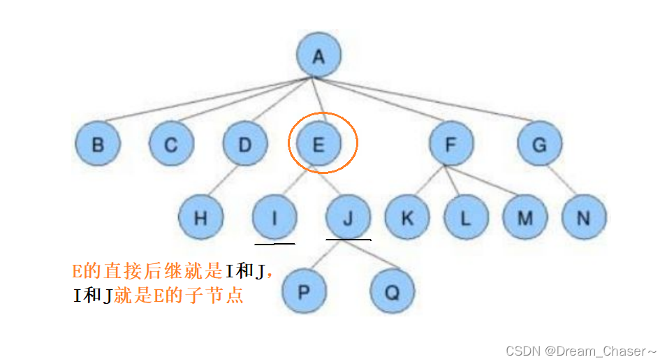 ✅非终端节点或分支节点:度不为0的节点; 如上图:D、E、F、G...等节点为分支节点