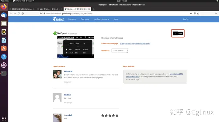 这里我只演示 netspeed 的安装,其他两个安装方法一样。如果你需要安装其他 gnome 插件,也可以按照这个方法安装。