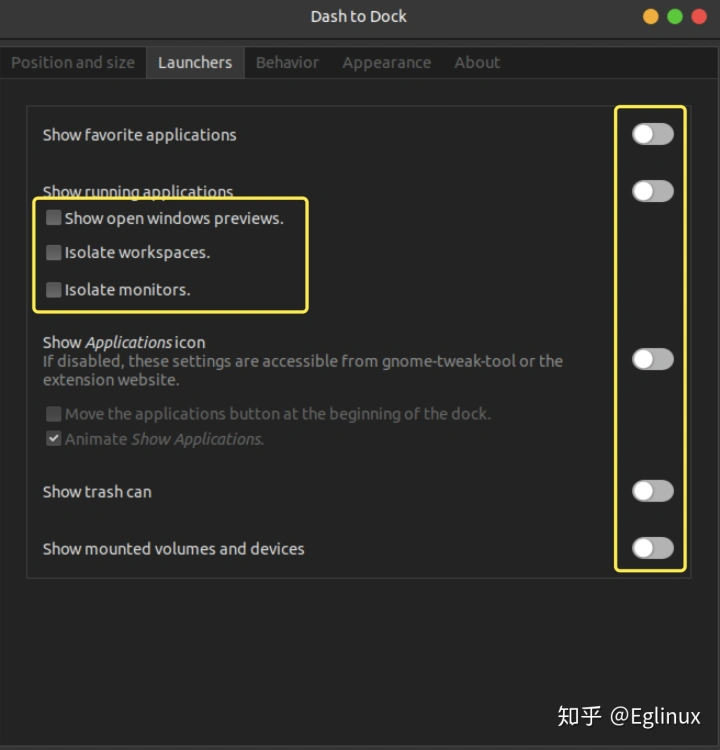 还记得之前在浏览器安装的 dash to dock 吗?现在有了 plank,我们就不再需要它了,现在在浏览器上打开 gnome 插件的网站,在已安装的插件中找到 dash to dock。删除它之前我们还要用它做一些配置,点击像扳手一样的图标进行设置。