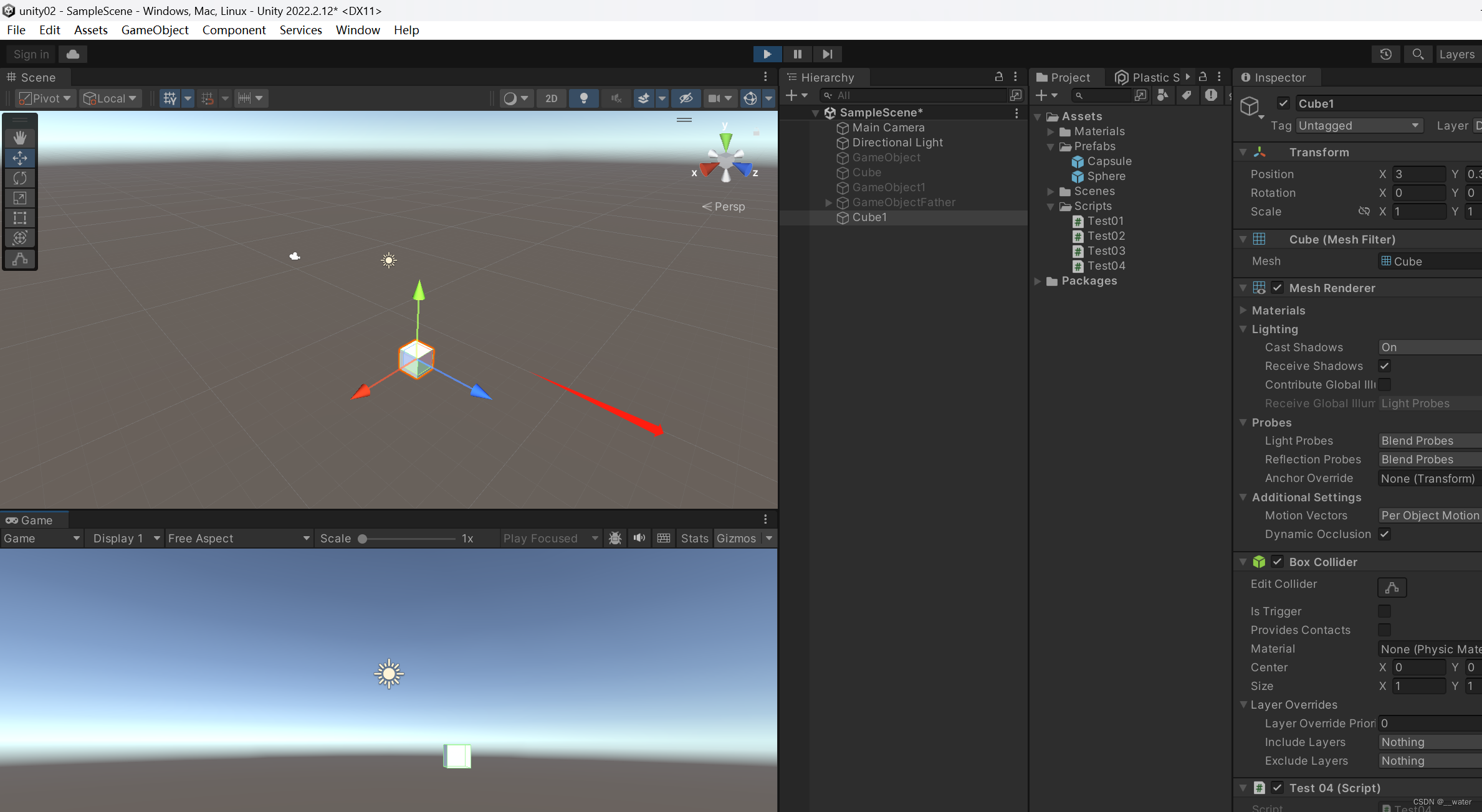 我们在游戏场景中给Cube一个旋转角度观察 自传与公转的区别