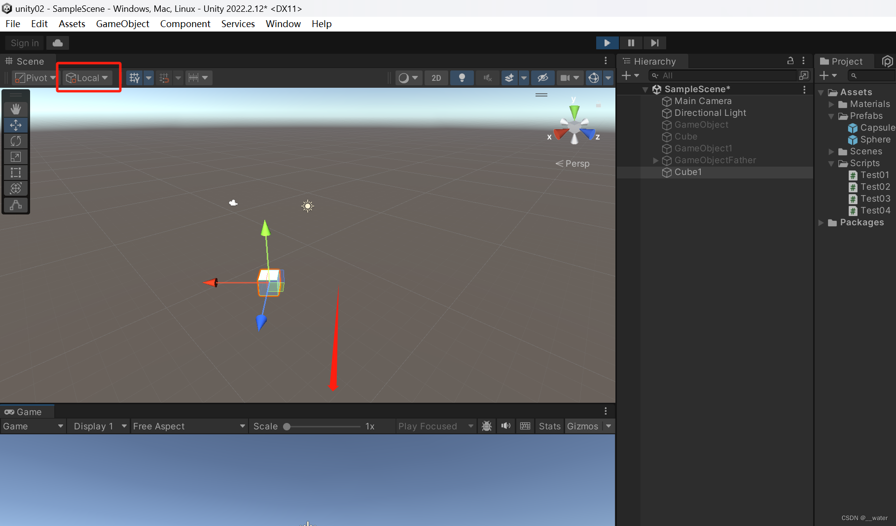 所以我们通常修改都是父物体的缩放大小 localScale