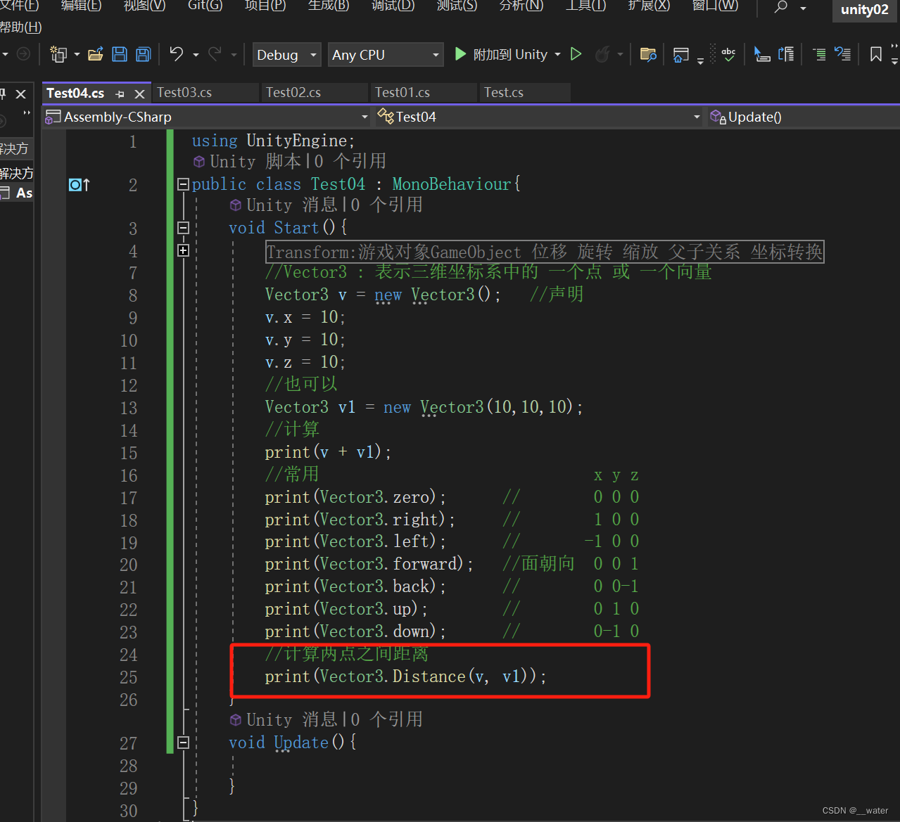 通常我们将 物体的位置 写在Start()里