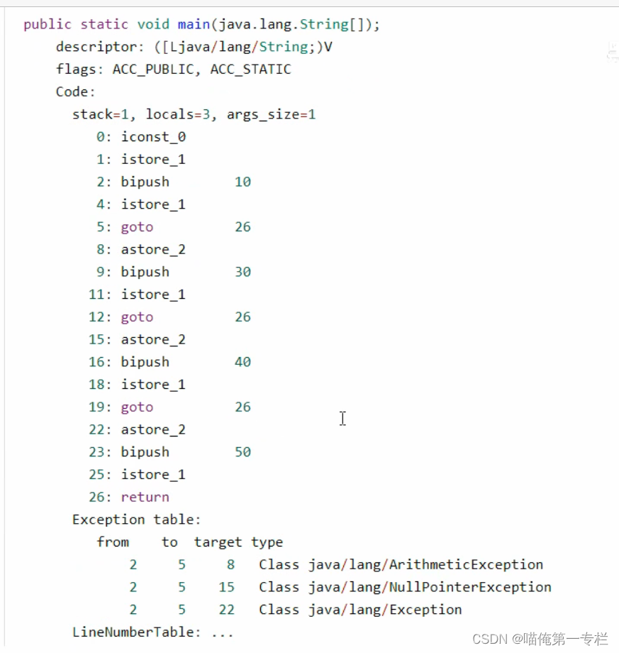 astore_2:就是把异常对象的地址存到局部变量表2号曹位上