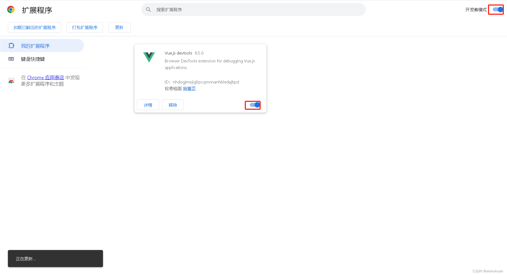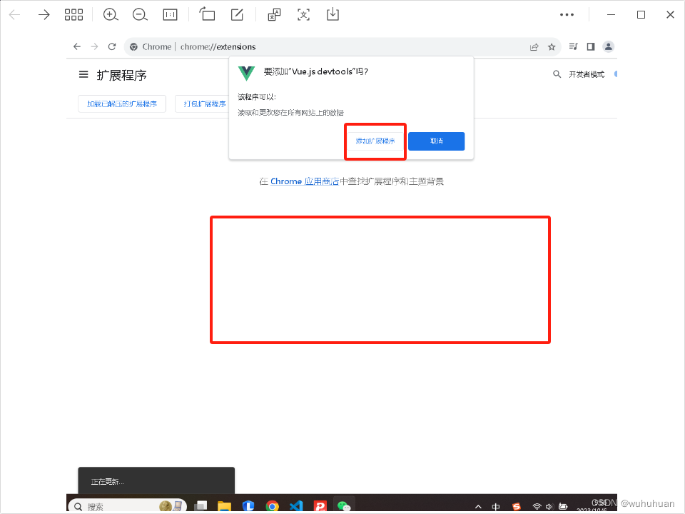 二、打开开发者模式,将vue-devtools.crx 拖入页面,点击添加扩展程序