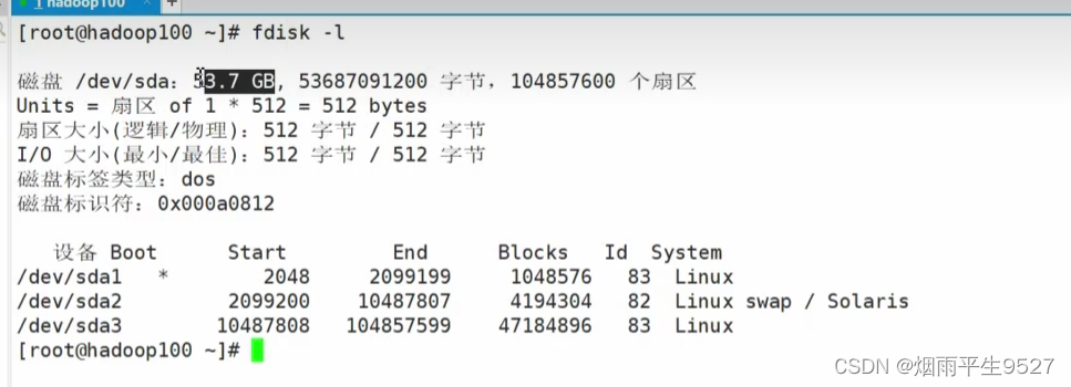 - `-u`:以扇区而不是柱面为单位显示分区信息。