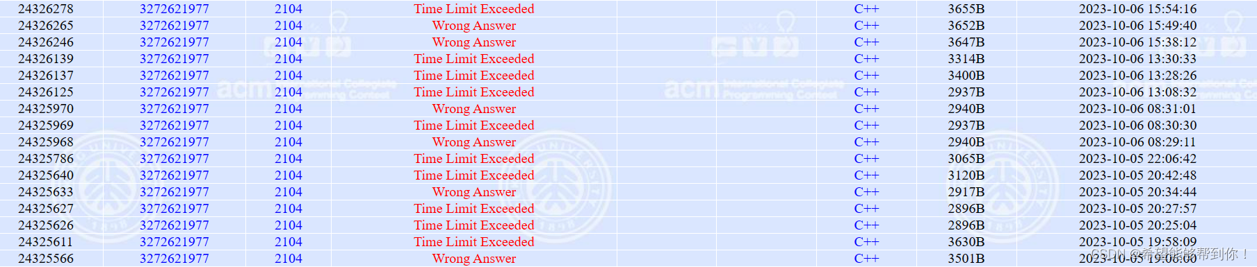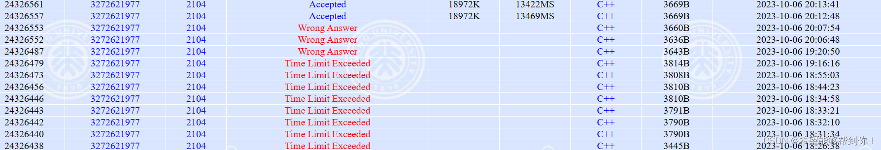 设一开始输入的数组为dat,那么我们把dat排序后作为sortedDat,然后 L = -1,R=n(二分时候的 l 和 r 是达不到的,都取开区间)当L+1 < R时循环,mid = (L+R)/2,然后我们再循环对这些块来使用二分,找到所有块中小于sortedDat[mid]的数量和cnt,如果cnt 考虑下复杂性 O(log(n)*sqrt(n)*log(n)*m),好像是可以的,但实际并不如此。 此时我们需要对算法进行优化,如何优化呢?考虑下比较糟糕的情况,假如n=100000,则我们会分316块,假设涉及的区间包含200块,那么每次二分,循环200次,然后200次循环里还有2分,起始也可能会比较慢,所以我们考虑如何把200个小块合并,假设2个相邻的合并成一个,改成100的话,速度可以快一倍。 于是我们可以在起初分桶的时候,按2 * floor(sqrt(n)) 来分一些大块,然后对这些块也都进行排序,一个大块相当于2个小块。 于是我们执行每次查询时需要进行的操作为: 1、根据区间 i j 找到包含的桶 2、根据找到的桶,来处理不在桶内,而且被 i 和 j 包含的区间,对此区域排序并记录长度。 3、循环包含的桶,如果 两个相邻的小桶可以被一个大桶替换的话,则用这个大桶替换掉小桶,依据此思路,把所有的小桶都用大桶替换。 4、 对sortedDat里面的数进行二分,L = -1,R=n,针对每次的mid,循环里利用二分找到所有涉及的小桶、大桶和其他区域里小于 sortedDat[mid]的数量总和cnt,如果cnt小于k,则L=mid,否则R=mid,循环结束时,输出sortedDat[L]即可 (如果不涉及到任何桶,那直接输出other[k-1]即可,不用走二分这个思路) (然后利用大桶替换小桶时,可以循环涉及的小桶,如果它不是涉及到的最后一个,且它的下标 i是偶数,则它和它的下一个被一个大桶替换,否则的话这个桶保留,简单的思路就是定义一个变量i=0,设当前区间涉及的小桶数量为bucketLen,保存当前区间相关的桶的数组为bucket,然后 i < bucketLen时候循环,如果i+1小于bucketLen且bucket[i]%2==0,那么就把 i /2记录为当前涉及的大桶 bucketBig[bigLen++]=i/2,然后i +=2,否则就把 bucket[i]加到队列里,最后把不在队列里的小桶都去掉,把队列里的小桶记录下来为替换后涉及到的小桶,然后大桶就是bucketBig里的大桶) (我针对桶的下标从0开始计算,然后下标 i 的小桶的区间为 [ i * 根号n , (i + 1) * 根号n),下标 i 的大桶的区间为[ 2 * i * 根号n , (i + 1) * 2 * 根号n),这样的话大桶 i /2就代表小桶 i 和 i + 1,需要i%2==0 ) 优化之后,就侥幸过了 (做完了之后看下书,发现书里使用平方分割每个桶是1000大小,不过我觉得比赛时靠自己思考很难想到扩到1000吧!我这种思路两个桶变成一个思路倒是容易想到而且可行!) 我做完了这个题目之后,读了下挑战程序设计,发现书中还有一种解决方法是线段树,维护数组的线段树也叫区域树,让叶子节点维护长度为1的有序数组,它的父节点维护长度为2有序数组,然后根节点维护 [ 0 , max(n_,2^i) ) 有序数组, 这个树也挺好创建的,就和线段树的初始化一样,先解决叶子节点,然后把两个叶子节点合并时候,就把小的数字放前面,大的数字放后面即可。 然后两个有序数组合并时,就可以定义两个指针 L和R,然后记录每个的长度lenL,lenR,设父数组的长度为lenPa,设父数组时arrPa,左孩子数组是arrL,右孩子数组是arrR while L < lenL || R < lenR if R >= lenR arrPa[lenPa++] = arrL[L++] else if L < lenL && arrL[L] arrPa[lenPa++] = arrL[L++] else arrPa[lenPa++]=arrR[R++] 简单写了几行不标准的伪代码,两个有序数组合并成一个有序数组,就是这样的,这个效率上和STL和merge是差不多的,所以线段树初始化就可以用这个方法把 i * 2 +1和i*2+2的数组都合并到i的数组。 然后线段树维护这么大的一个数组,定义变量时候肯定没办法直接定义二维数组,我的思路就是定义一个 int *dat[262150],然后在初始化的时候: 1、如果是叶子节点就 dat[i]=new int[1],然后记录len[i]=1 2、如果是父节点,那就 dat[i]=new int[len[i*2 + 1] + len[i*2 + 2]] 初始化结束之后,我们针对每次查询,先查下线段树,找到的所有线段树节点,然后这些节点自己维护的数组肯定是有序的,所以思路也是和平方分割差不多。 把数组排序,二分排好序的数组里所有的元素,对 在区间内的 线段树节点数组 进行循环二分,记录小于 数组第mid项(拍好序数组里mid下标的) 的数量cnt,如果cnt 我一开始用vector,挂了很多次,因为当时没看书,不知道可以使用resize+merge,所有的元素都是使用循环push_back,结果一直TLE 后来想到可以先定义成指针数组,然后在初始化的时候使用 new int[10]这种,然后这样就可以当作int二维数组来用,放弃了vector之后侥幸过了。 后来我过了之后,看了下书里,发现书中使用了merge和resize,也使用了upper_bound,之后我又对我自己的代码进行调优了下,去掉了一次无用的初始化,然后发现其实不用vector、merge和resize,也不用upper_bound,全都自己实现就行,自己写new int[10]这种可变数组代替vector,自己写上文中的循环那种合并代替merge,自己写binarySearch去找小于number的数量代替upper_bound,也是可以过的,时间上也优化了一些,如下