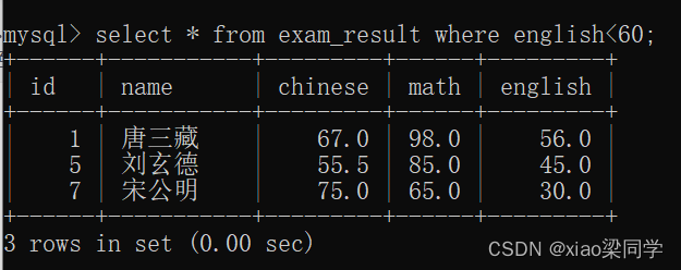 where条件查询,可以是有多个条件进行逻辑运算,是一整个条件的结果来返回查询结果集