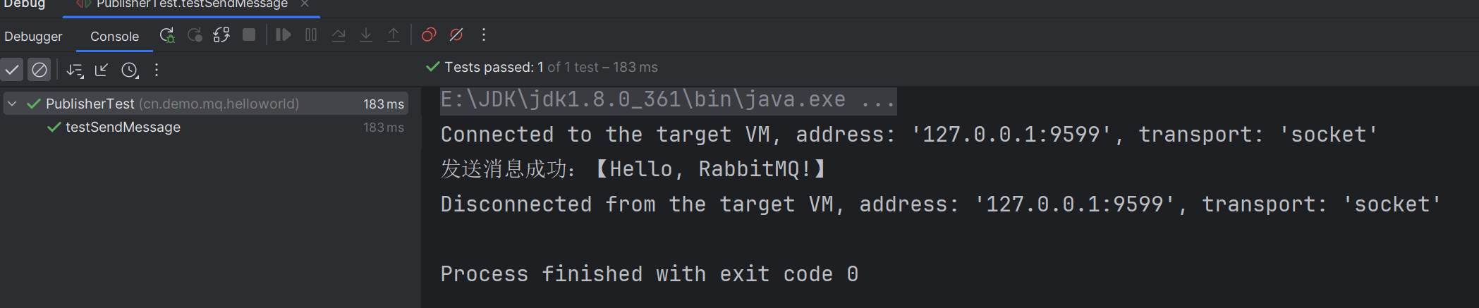 以下是一个通过 Java 中单元测试的代码向 RabbitMQ 发送消息的示例。在这个示例中,我们使用 RabbitMQ 的 Java 客户端库来创建连接、通道,并发送消息到队列。