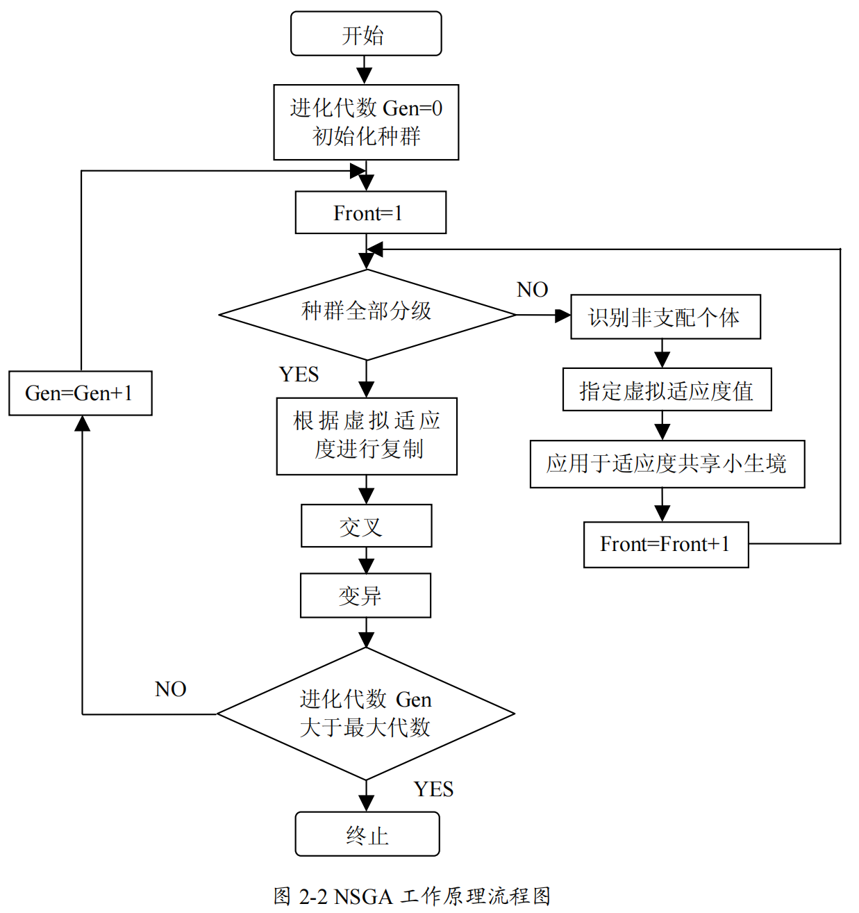 NSGA 通过非支配排序算法保留了优良的个体,并且利用适应度共享函数的方法保 持了群体的多样性,效果非常好。但是实际应用中发现