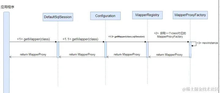 这一过程中涉及的组件主要包括MapperProxyFactory、MapperRegistry、MapperProxy,更加详细的分析可参考Mybatis流程分析(六): Mybatis中方法和sql语句的桥梁——MapperProxy, 总之这一过程的本质就是通过Jdk动态代理的方式返回一个实现接口的实例对象