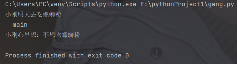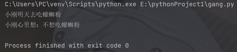 把小刚和小红都作为一个.py文件。现在小红和小刚都要执行了明天去吃螺蛳粉的事件,我们用print打印出来。