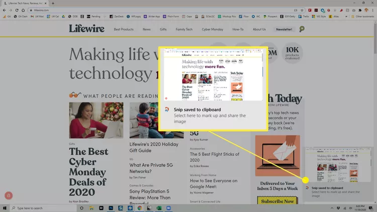 3、一旦你捕获到屏幕截图,它就会保存到你的剪贴板上,你会看到屏幕角落里弹出一条通知。单击此通知以标记并共享屏幕截图。