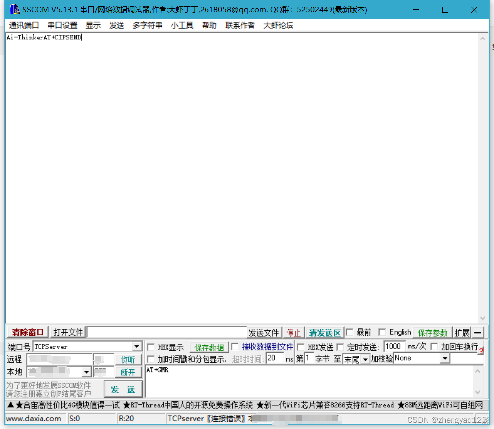 这里电脑pc作为TCP Server,ESP-07S作为TCP Client 。