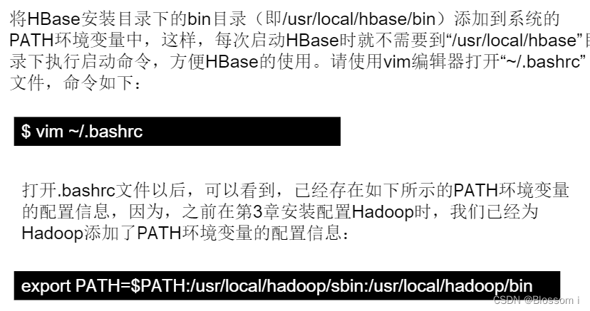 export PATH=$PATH:/usr/local/hadoop/sbin:/usr/local/hadoop/bin: /usr/local/hbase/bin