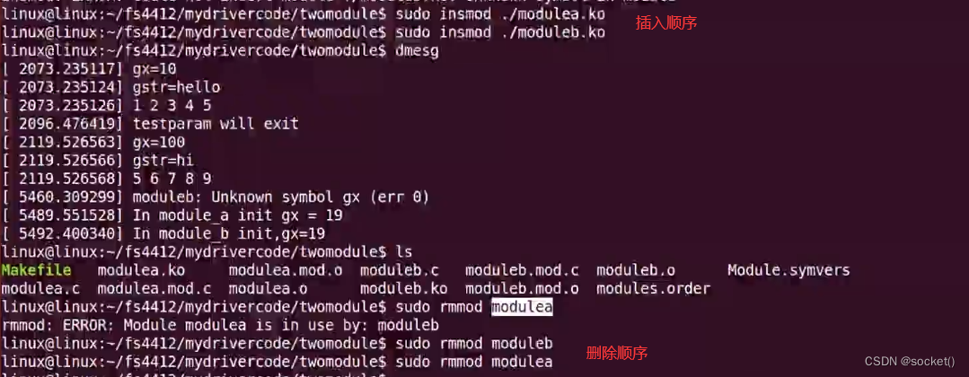 编译顺序一定要先A后B,插入顺序也要先A后B。卸载顺序先B后A。