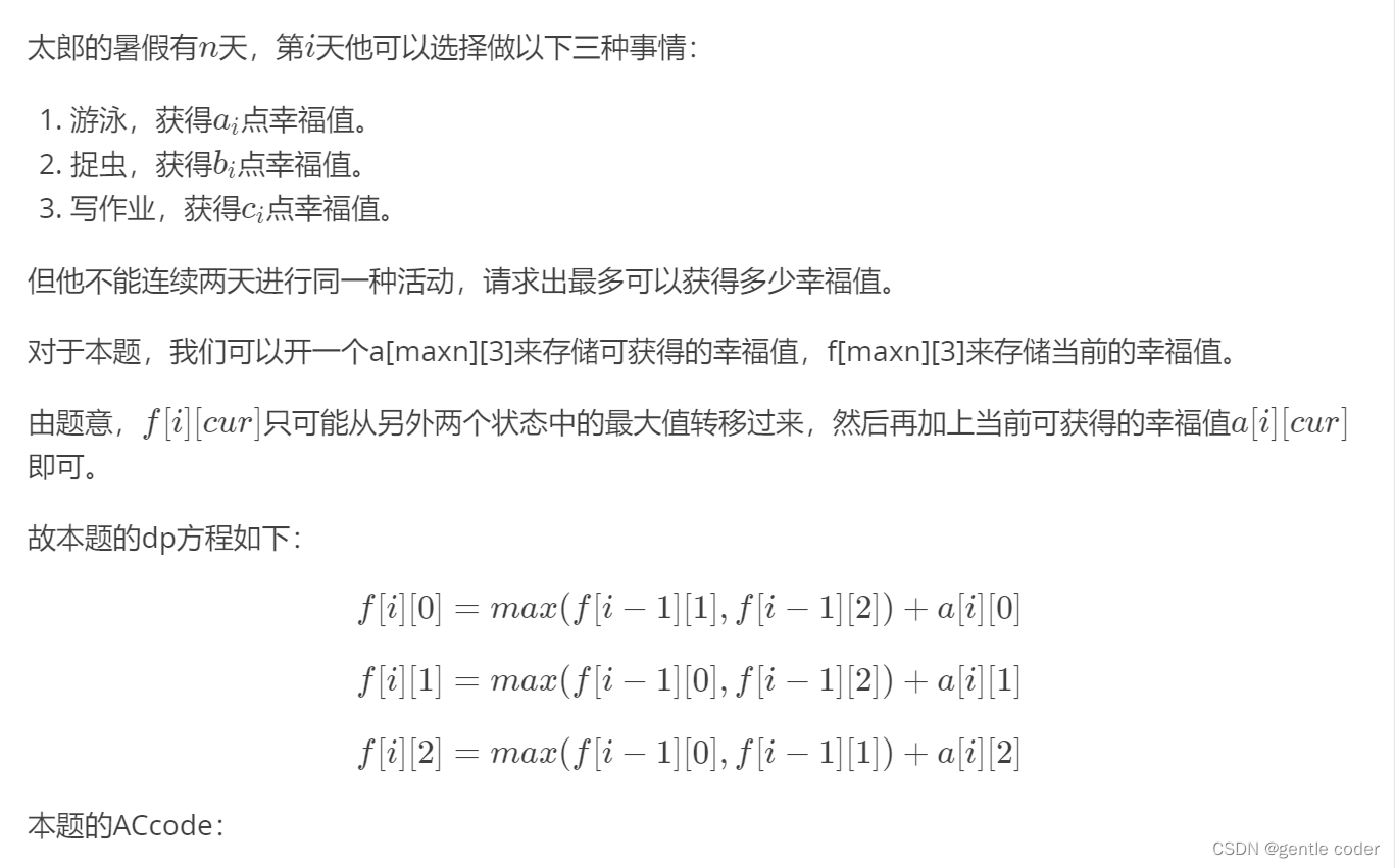 - dp[i][3]=max(dp[i-1][1],dp[i-1][2])+a[i][3];