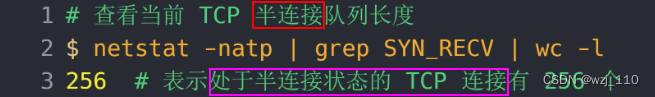 - 操作2: 服务端执行'如下命令'查看处于 'SYN_RECV' 状态的'最大'个数