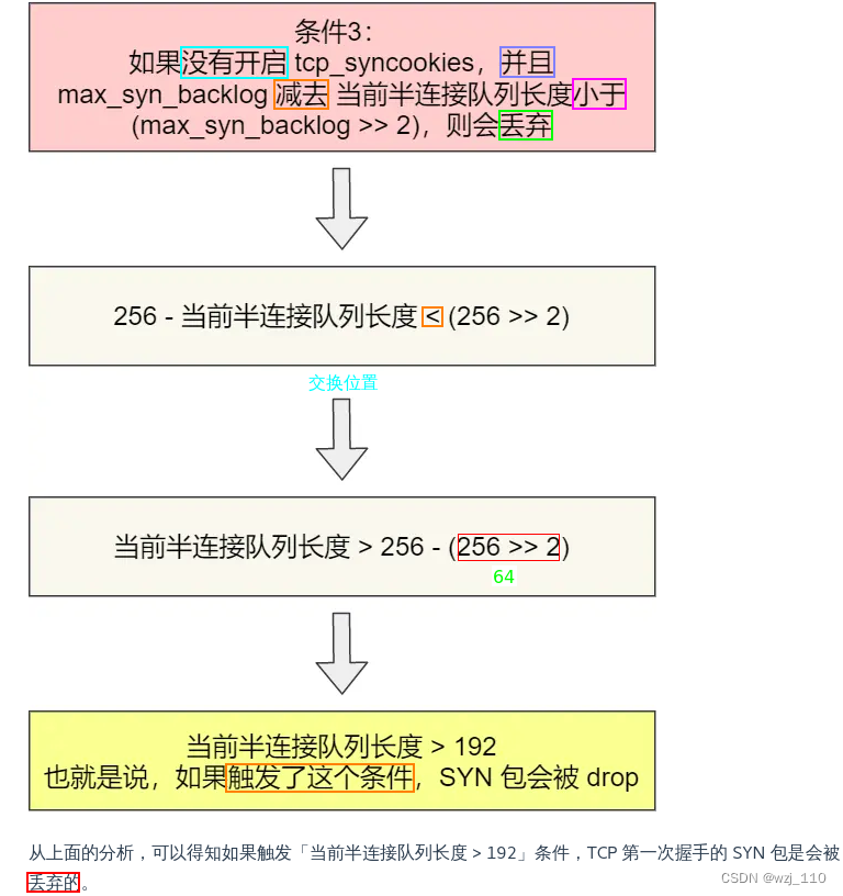 - 条件: '不开启' net.ipv4.tcp_syncookies前提下