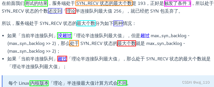 ⑧ 处于 SYN_RECV 状态的最大个数不是理论值 max_qlen_log