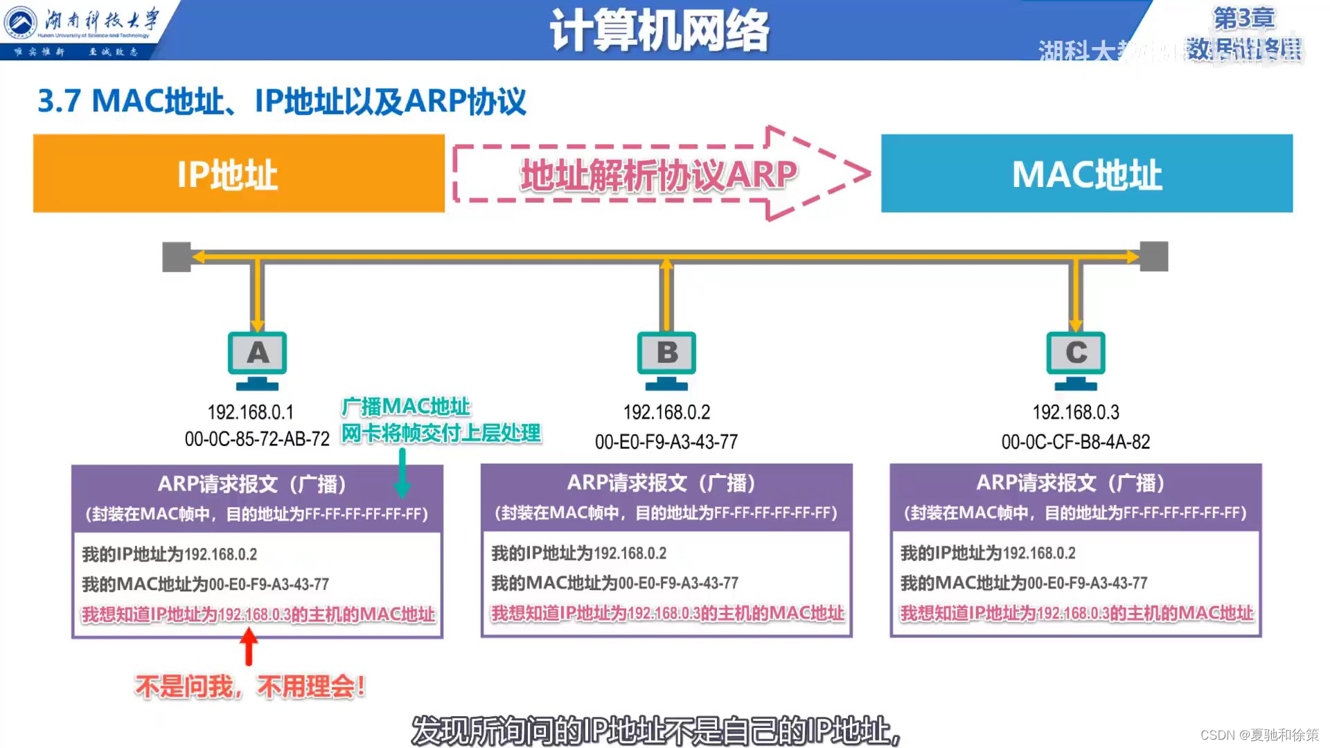 3. **硬件地址与网络地址的区别**:MAC地址是物理地址,与设备硬件绑定,而网络地址如IP地址是可以更改的。