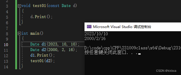 再验证一下普通类对象能不嫩调用 const函数,可以发现也是没问题的。
