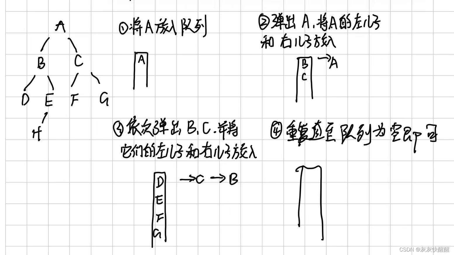 层序遍历,在上一篇中我也有讲,就是对一棵树进行从上到下,从左到右的遍历操作。那么如何通过代码来实现这一个过程呢?这时我们就可以用到之前的一个数据结构,也就是队列,那么我们如何利用队列来进行层序遍历呢,我们来看下面: