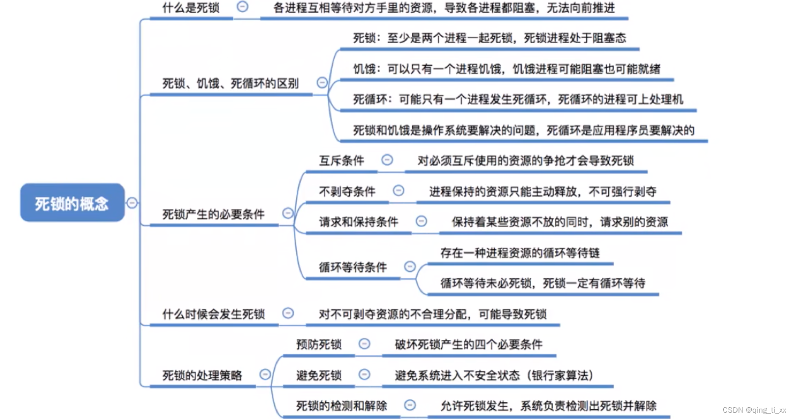 注意:发生死锁时一定有循环等待,但是循环等待不一定会产生死锁。