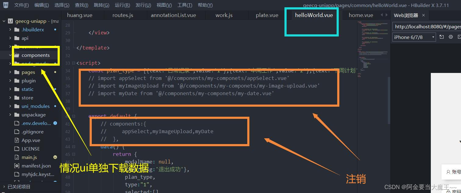 2,根据报错位置,找到对应的页面,注销引用的 ui 组件