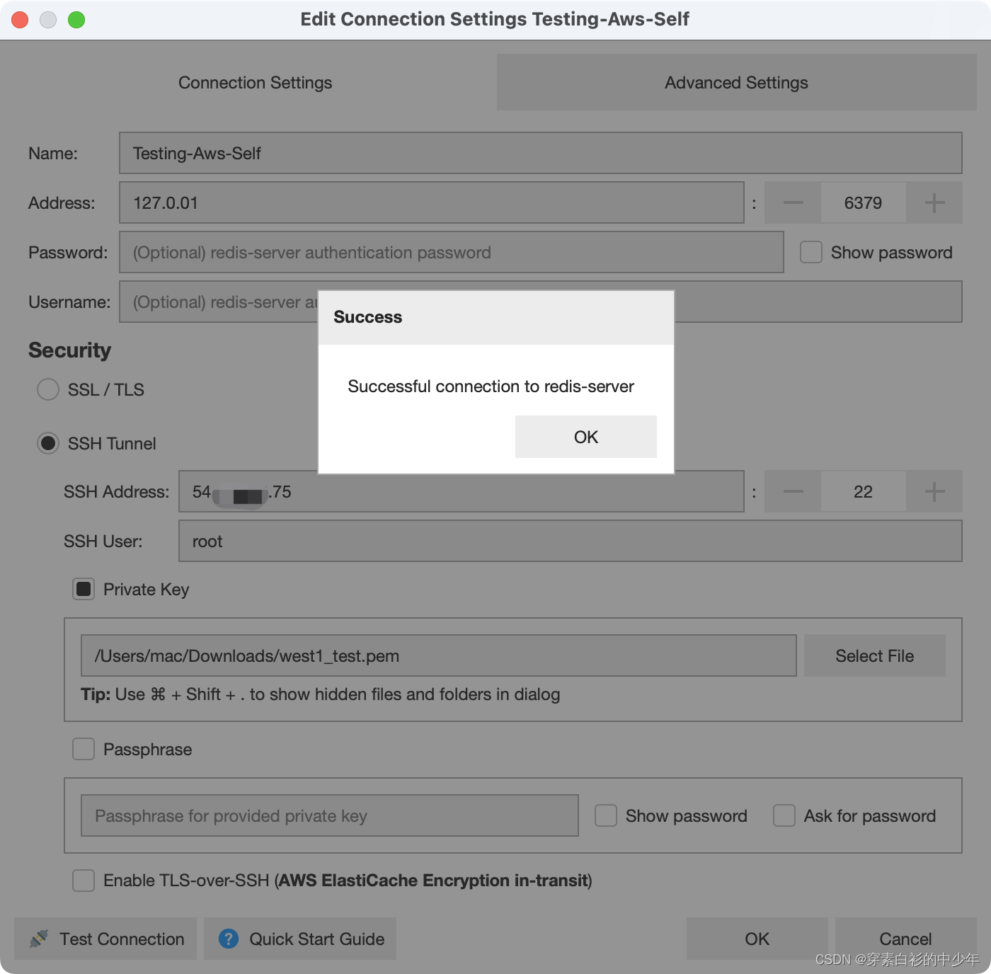 其中,mykey.pub 是公钥的文件名,user@server 是 Redis 服务器的用户名和 IP 地址。