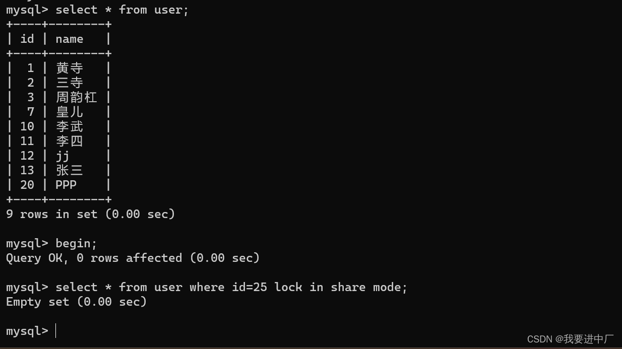 一)lock in share mode: