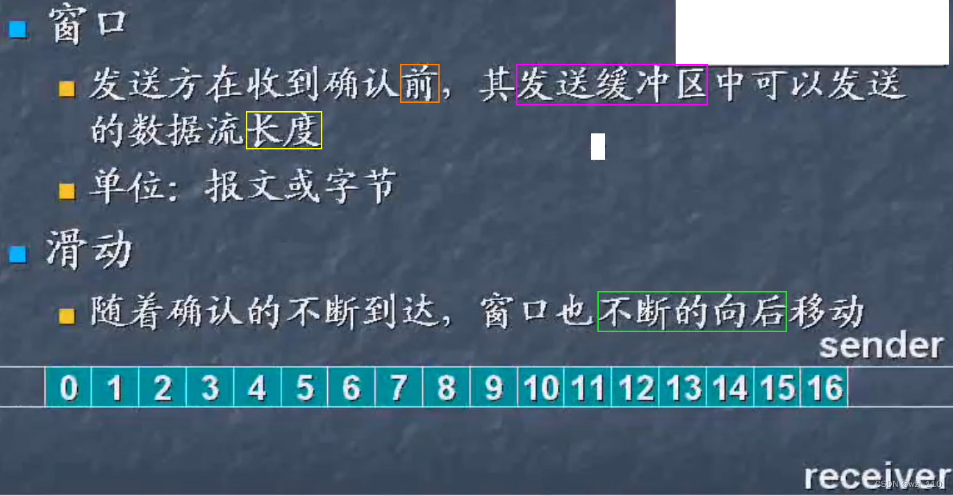 - 特点: TCP的'流量控制',窗口'起始于'确认序号字段指明的值,这个值是'接收端期望'接收的字节数