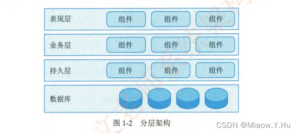 分层架构(Layered Architecture)是最常见的软件架构,也是事实上的标准架构。这种架构将软件分成若干个水平层,每一层都有清晰的角色和分工,不需要知道其他层的细节。层与层之间通过接口进行通信。分层架构通常明确约定软件一定要分成多少层,但是,最常见的是四层结构,如下图所示。