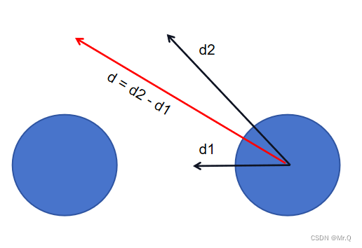 因为移动是相对的,所以可以将左边的球设置为静止的,右边的移动方向就变成d,如下。