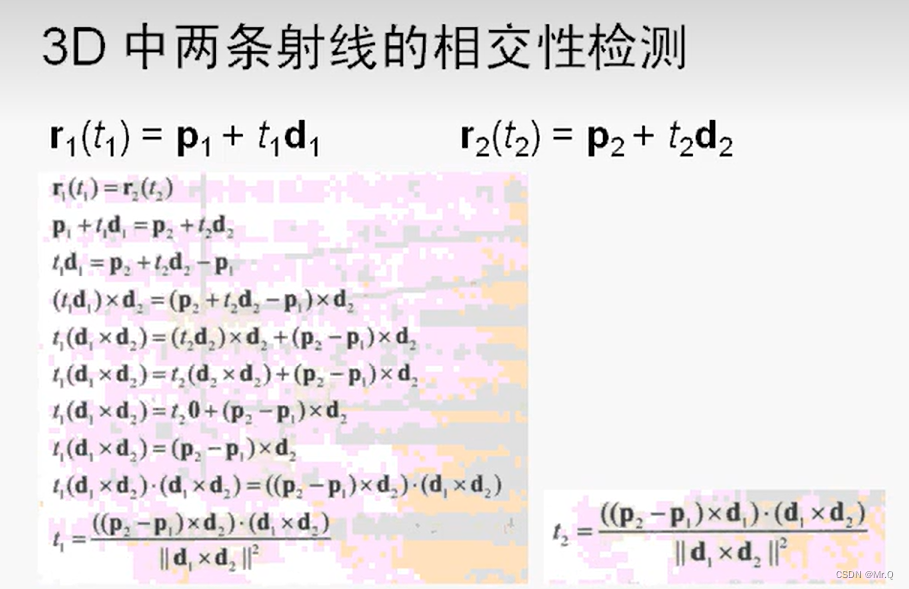 其实是求t,知道相交点的t值,利用射线公式就知道相交点坐标。