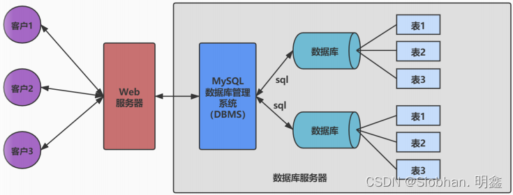 数据库管理系统(DBMS)可以管理多个数据库,一般开发人员会针对每一个应用创建一个数据库。为保存 应用中实体的数据,一般会在数据库创建多个表,以保存程序中实体用户的数据。