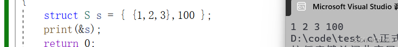 - printf("%d %d %d %d", s.data[0], s.data[1], s.data[2], s.num);
