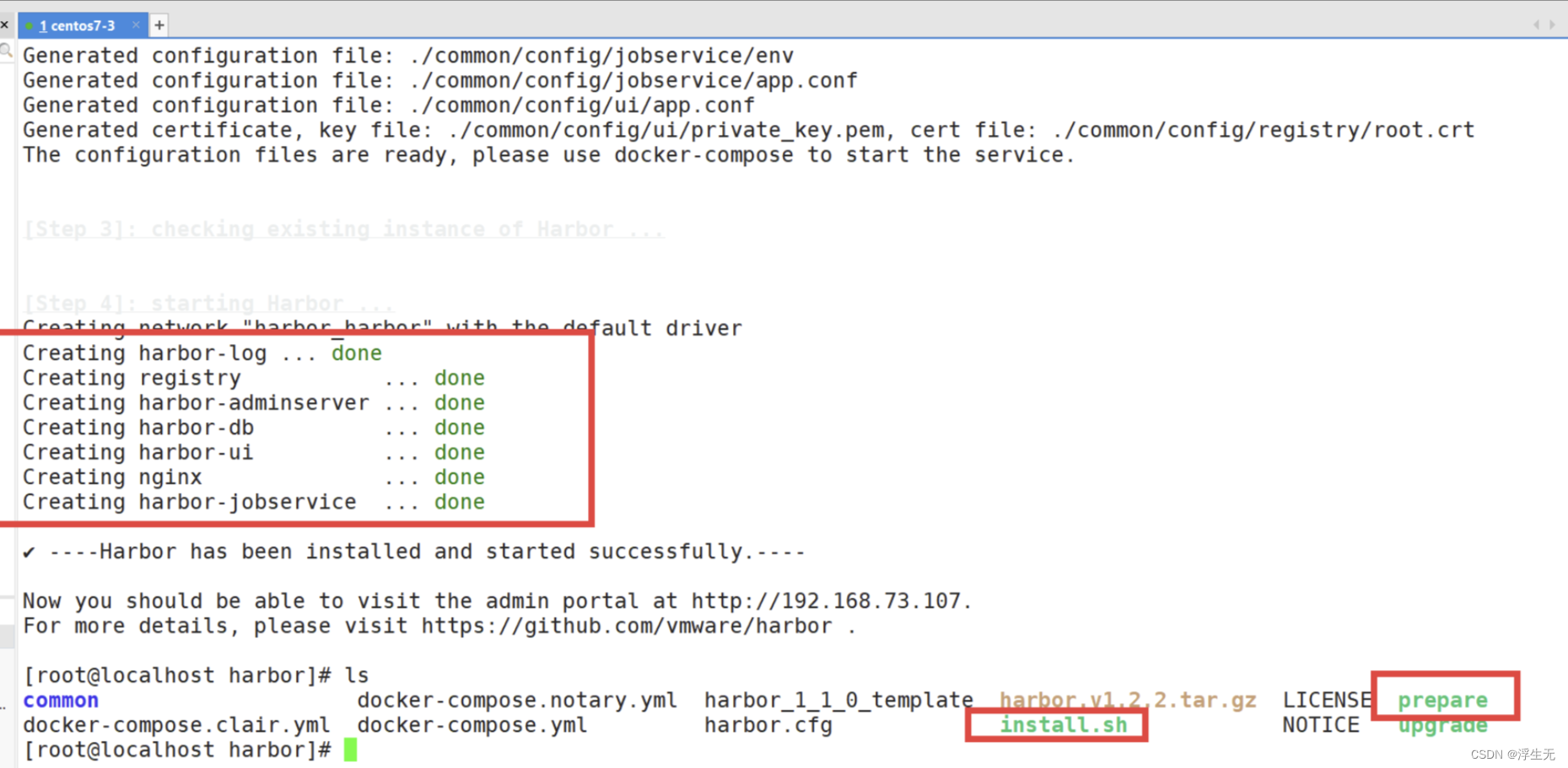 ./prepare #为 harbor 启动的容器生成一些必要的文件(环境)