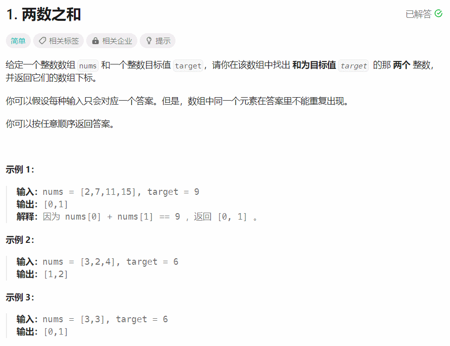 具体地,在枚举中判断两数之和是否等于 target,如果相等,直接返回对应的下标。