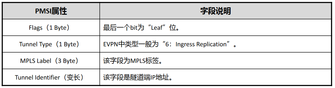 PMSI用于携带多播报文传输所使用的的隧道类型和隧道标签信息