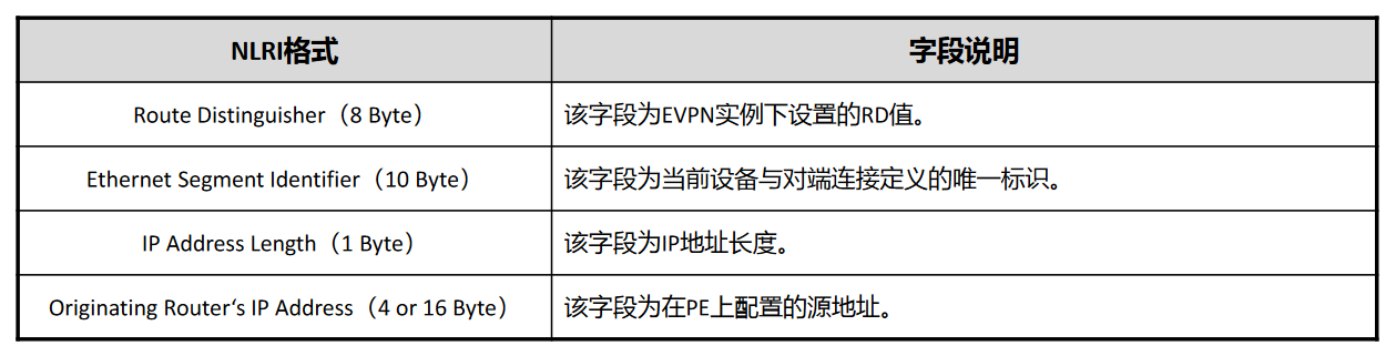| NLRI格式 | 字段说明 |