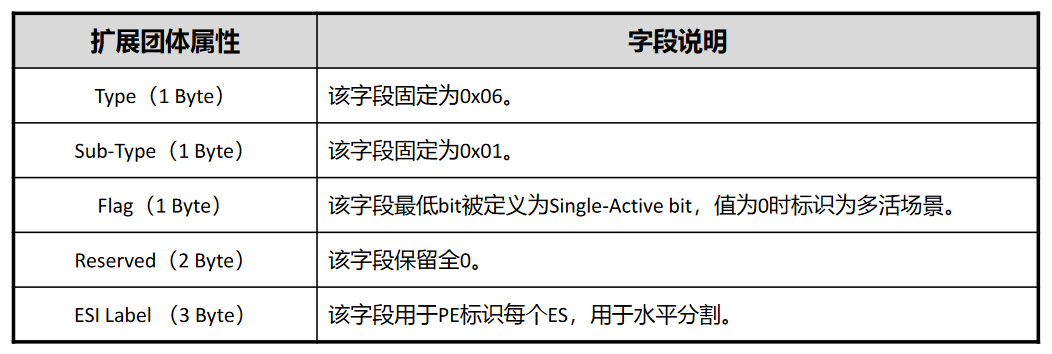 水平分割由所有PE通告携带ESI Label扩展团体属性的Ethernet A-D per ES route实现。