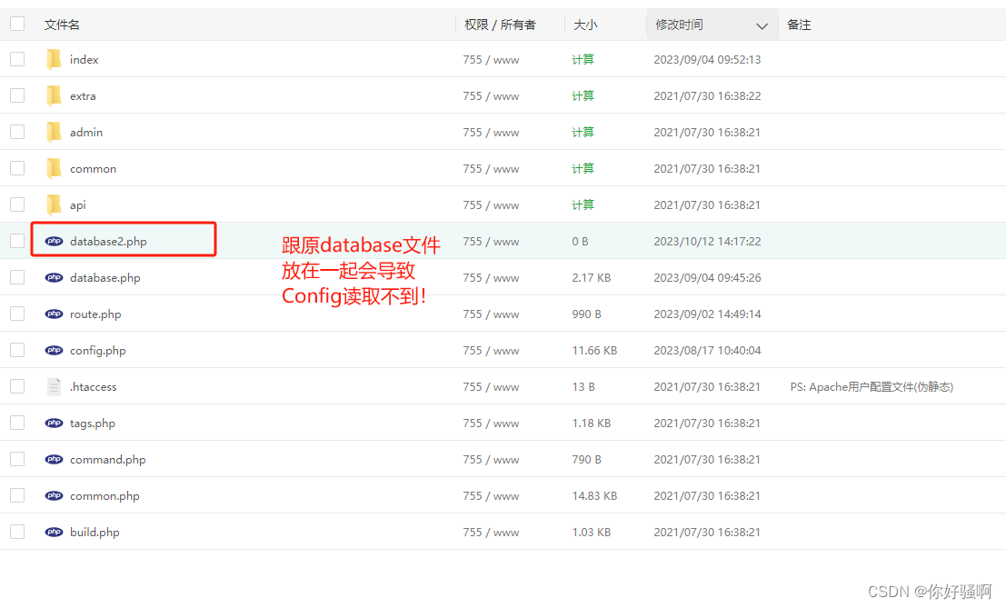 要把database2.php放置到application/extra/下才能读取到