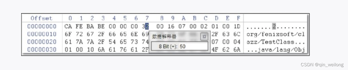 每个Java class 文件的前4个字节被称为他的魔数(magic number):0x CAFEBABE (图四的前四个字节)。魔数的作用在于,可以轻松的分辨出java class文件和非java class 文件。如果一个文件不是以0xCAFEBABE 开头的,那他肯定不是java class文件。