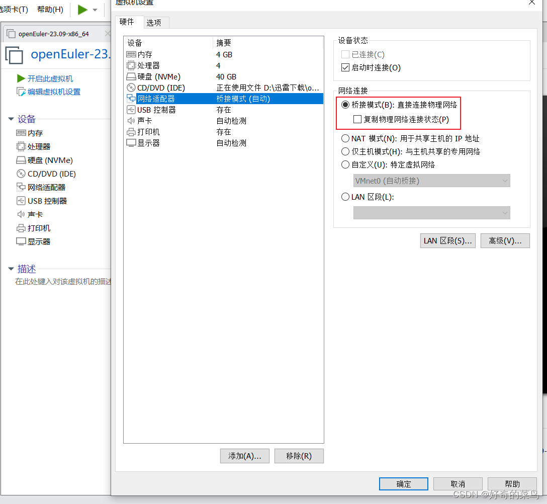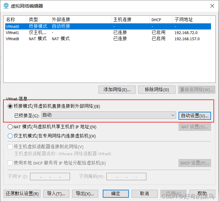 ip配置的子网掩码和默认网关保持和宿主机一致,ip局域网内不冲突。