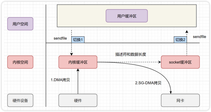 上文知道 sendfile() 还具有一次 CPU Copy,通过结合 DMA Gather Copy 技术,可以进一步优化它。