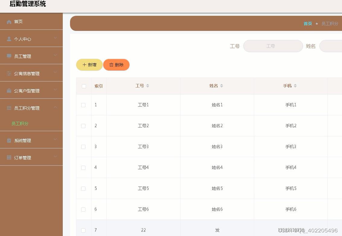 本文以Java为开发技术,实现了一个后勤管理系统。后勤管理系统的主要实现功能包括:管理员:首页、个人中心、员工管理、公寓信息管理、公寓户型管理、员工积分管理、系统管理、订单管理,员工;首页、个人中心、员工积分管理、我的收藏管理,前台首页;首页、公寓信息、通知公告、个人中心、后台管理、在线客服功能,基本上实现了整个后勤管理系统的过程。